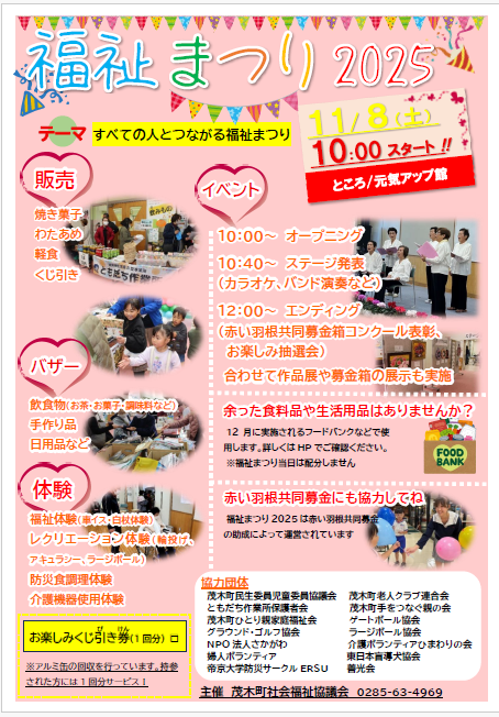 【11月8日(土)】茂木町社会福祉協議会主催の「福祉まつり2025」に参加いたします。